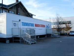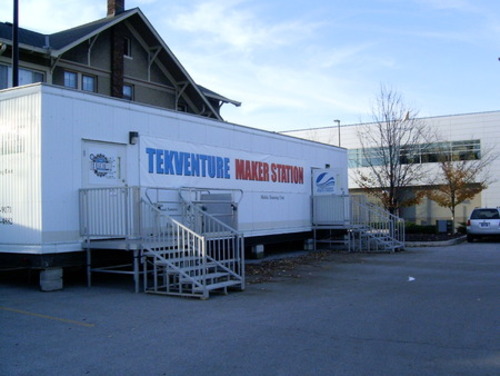 The Allen County Library in Fort Wayne, Indiana has another example they are calling the TekVenture Maker Station. TekVenture is a non-profit organization with a tag line that speaks to interconnecting imagination, technology and community. It and the library are partners in this small but ambitious endeavour.